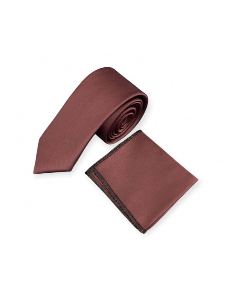 DARK BROWN TIE & POCKET SQUARE