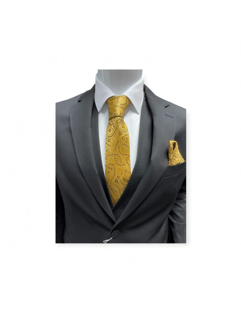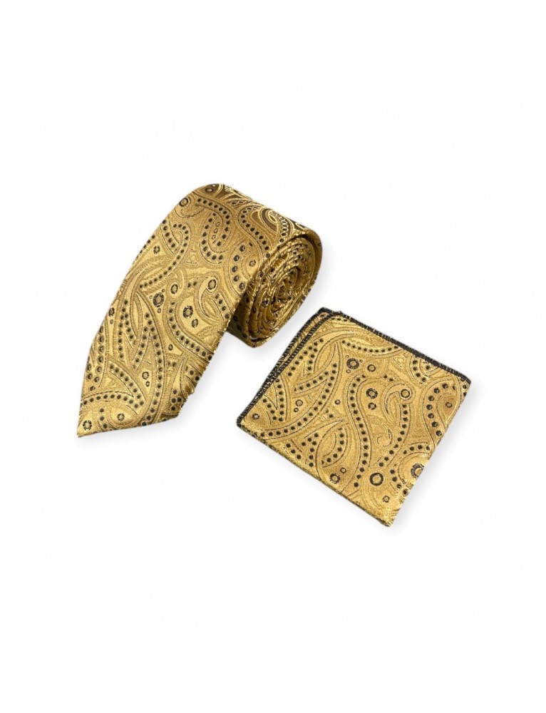 GOLD & BLACK TIE & POCKET SQUARE