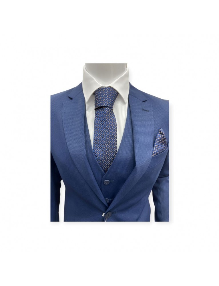 NAVY BLUE & LIGHT BROWN TIE & POCKET SQUARE