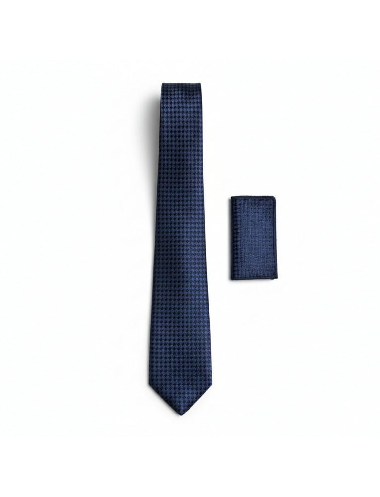 NAVY BLUE GEOMETRIC TIE & POCKET SQUARE