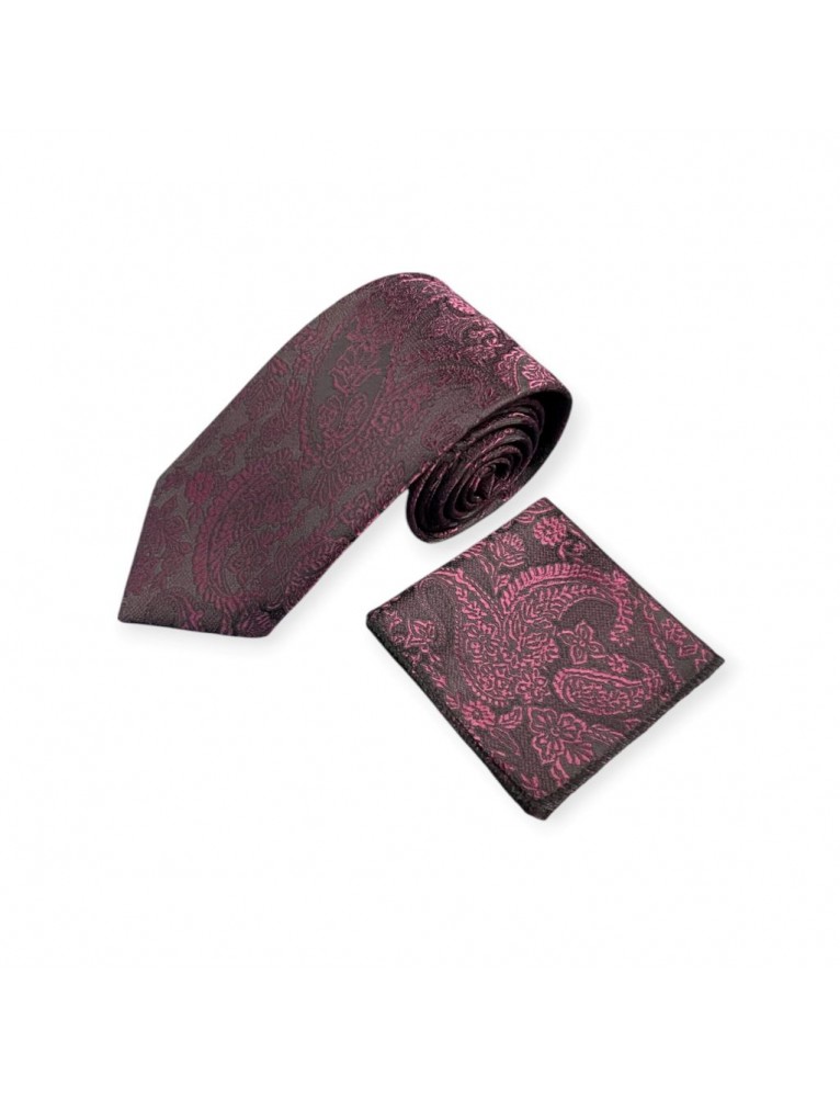 BURGUNDY PAISLEY TIE & POCKET SQUARE