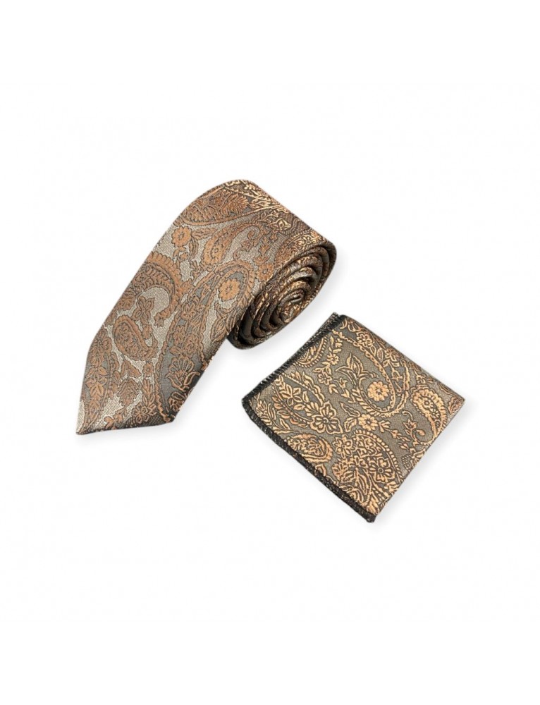 Brown Paisley Tie and Pocket Square